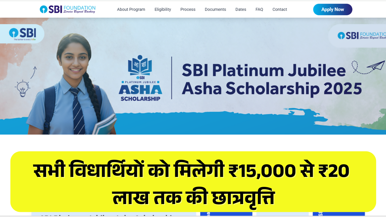 नमस्कार दोस्तों, अगर आप कक्षा 9वीं से लेकर ग्रेजुएशन तक किसी भी कोर्स की पढ़ाई कर रहे हैं, तो यह खबर आपके लिए किसी सुनहरे अवसर से कम नहीं है। भारतीय स्टेट बैंक (SBI) द्वारा शुरू की गई “एसबीआई प्लेटिनम जुबली आशा स्कॉलरशिप 2025-26” देश के लाखों मेधावी लेकिन आर्थिक रूप से कमजोर छात्रों के लिए वरदान साबित हो रही है। इस स्कॉलरशिप के तहत ₹15,000 से लेकर ₹20 लाख तक की राशि तक की वित्तीय सहायता दी जाती है — जिससे आप न केवल भारत में, बल्कि विदेश में भी उच्च शिक्षा का सपना पूरा कर सकते हैं।